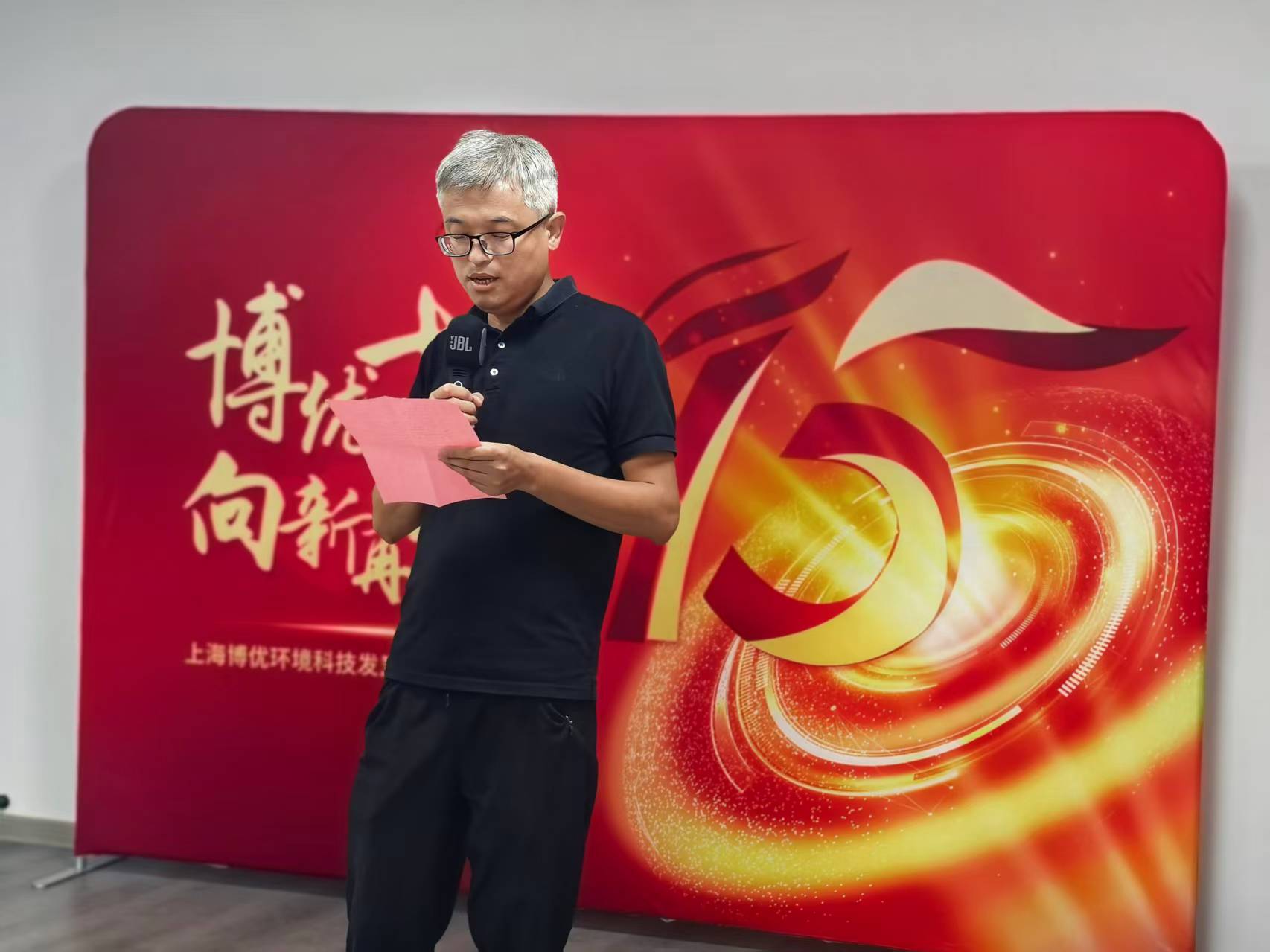 新员工代表黎鹏颖也上台发言,这个秋天给他们带来了“三重喜悦”。第一重是融入的喜悦,在公司成立15周年之际加入,见证了公司蓬勃向上的朝气,希望公司可以基业长青、再创辉煌;第二重是自豪的喜悦,只有国家稳定了企业才能稳固发展;第三重是团圆的喜悦,她表示在博优感受到了家的温暖,感谢领导对他们的指导与关爱。